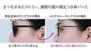 調節可能の箱足つき鼻パッドを採用することで、まつ毛があたりにくく、驚くほどのフィット感を実現しました。目とレンズの快適な距離を保つこともでき、汗をかいてもレンズの曇りを極力防止します。(※ご自身で調節できない場合、お近くの眼鏡店で調節可能です。)