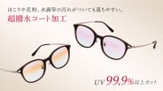 本商品のレンズは高度な光学技術と電子技術を基に、医療分野、眼鏡店向け機器分野、コーティング分野という多彩な分野で世界市場に事業を展開している日本企業、株式会社ニデックが開発した透明系でも紫外線をしっかりカットするレンズをベースに、特殊カラーリング加工を施した日本製レンズを採用しています。さらに超撥水コート加工を施すことで、ほこりや花粉等汚れがついても簡単に落ちやすく、水滴が滞留せず水ヤケが起こりにくく、メンテナンスフリーのお取り扱いが楽な商品です。