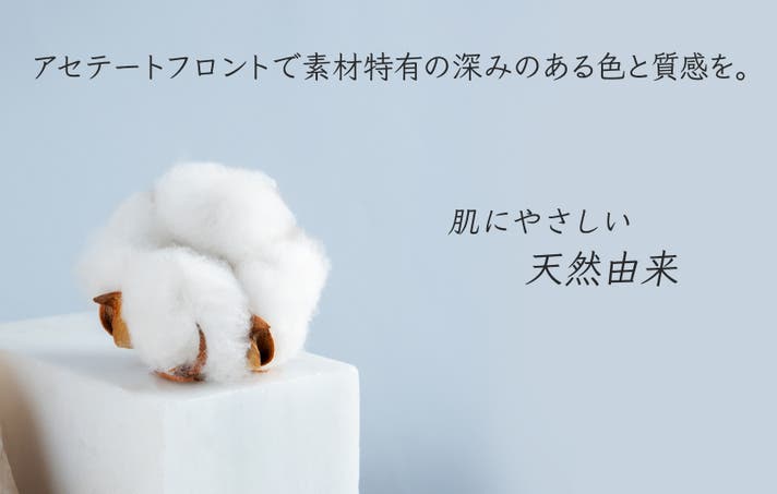 フロント素材は、天然素材コットン由来のアセテート生地を採用。生地本来の深みのある高級感あふれる色合いをお楽しみいただけます。