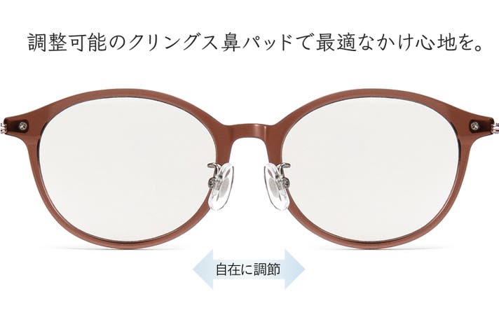 メガネフレーム同様のメタルクリングス鼻パッドを採用。お客様の鼻にあわせて調節可能です。(※ご自身で調節できない場合、お近くの眼鏡店で調節可能です。)