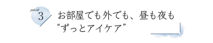 POINT.3 お部屋でも外でも、昼も夜も“ずっとアイケア”