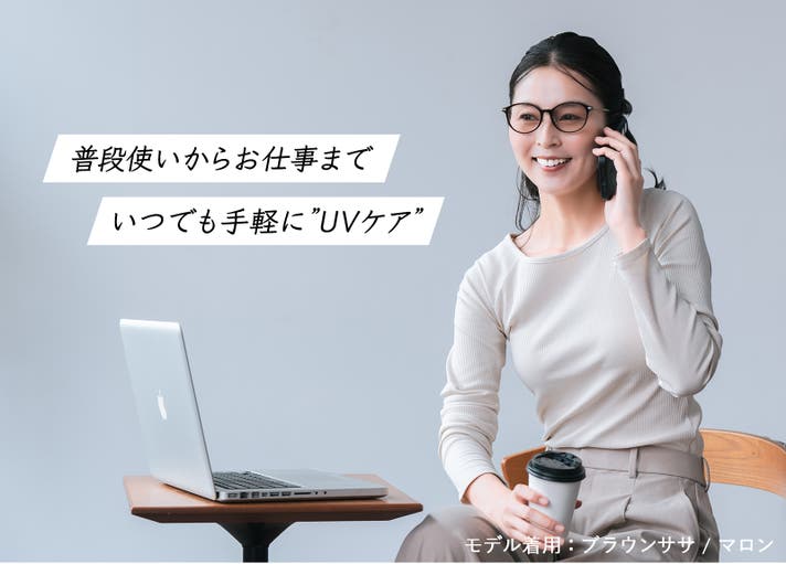 サングラスをかけることに抵抗感がある女性にも気軽に使っていただけるように、伊達メガネのようにうすいレンズカラー(やさしいライトベージュカラー)を採用。うすいレンズカラーでも紫外線とブルーライトをしっかりとカットするので、屋外での紫外線対策はもちろん、ディスプレイからのブルーライトや夜間運転の際の防眩対策や雨天時のちらつき等、日常の様々なシーンでお手軽に目をケアできます。