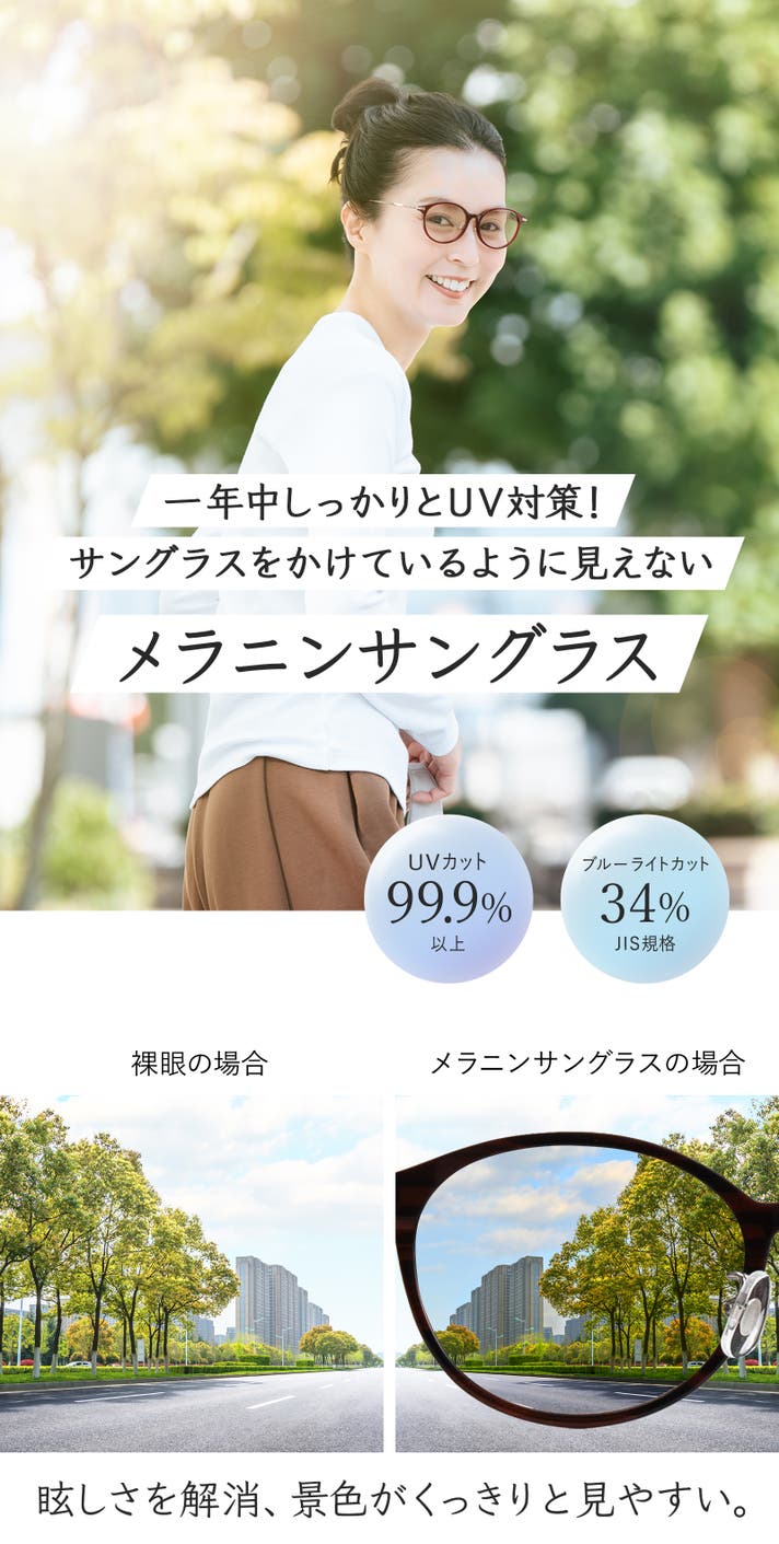素材:プラスチック(コーティング)メラニンレンズ