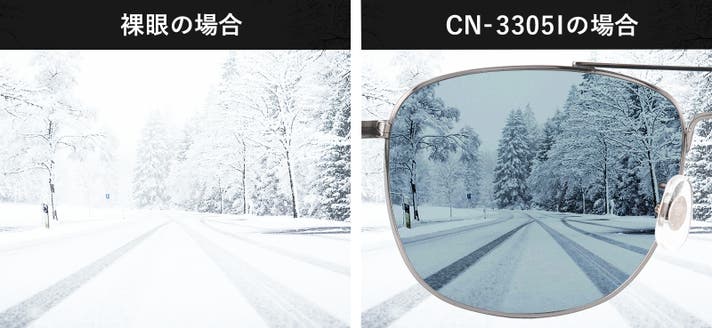 CN-3305Iに採用しているCR偏光レンズは、可視光線透過率をスモークレンズで35%、ブラウンレンズで37%と、比較的明るく設定しています。このことによって視界の明るさを保ちながら自然に近い色合いを確保します。