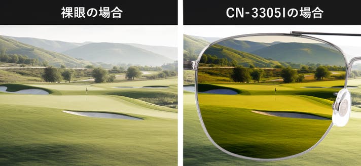 ゴルフでは、芝目・起伏・打球が見やすくなり、コース状況を把握しやすい視界に。