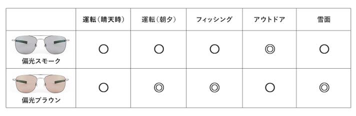 一般的に日中の強い日差しの下では偏光スモークレンズを、視界の明るさやコントラストを重視したい場合や曇天時、夕方には偏光ブラウンレンズをおすすめします。
