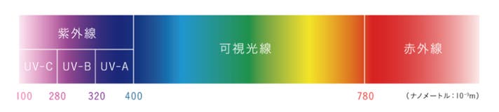 紫外線はその長短により、A波・B波・C波に分けられています。波長が長いものからA波→B波→C波となります。本商品はC波はもちろん、A波・B波をカットします。