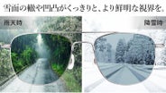 - 偏光サングラスでありながら明るい視界で晴天時はもちろん、曇天時や雨天時、さらに降雪時も見やすい