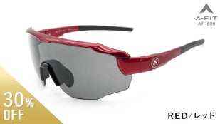 A‐FIT ADJUSTサングラス 「AF‐808レッド」一般販売予定価格20,300円(税・送料込)のところ、先着10個限定で約30%Offの特別価格14,000円にてお届けします。レンズは偏光スモークレンズとレッドリボミラーレンズの2枚がセットになっています。