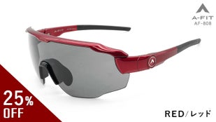 A‐FIT ADJUSTサングラス 「AF‐808レッド」一般販売予定価格20,300円(税・送料込)のところ、先着25個限定で約20%Offの特別価格16,000円にてお届けします。レンズは偏光スモークレンズとレッドリボミラーレンズの2枚がセットになっています。