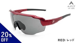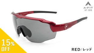 A‐FIT ADJUSTサングラス 「AF‐808レッド」一般販売予定価格20,300円(税・送料込)のところ、先着20個限定で約25%Offの特別価格15,000円にてお届けします。レンズは偏光スモークレンズとレッドリボミラーレンズの2枚がセットになっています。