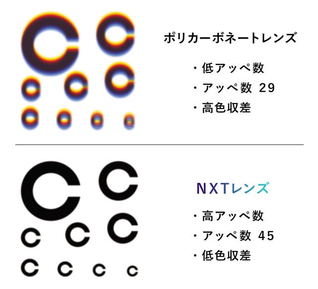 (※アッベ数は数値が高いほど光学特性として優れています。上記イラストはわかりやすくするためあえて加工しています)