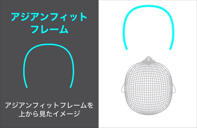 日本人の顔は、欧米人に比べて平面的で、前面はひろくなっているため、欧米人向けのフレームだと締め付け感が強く、ずれが生じやすくなります。