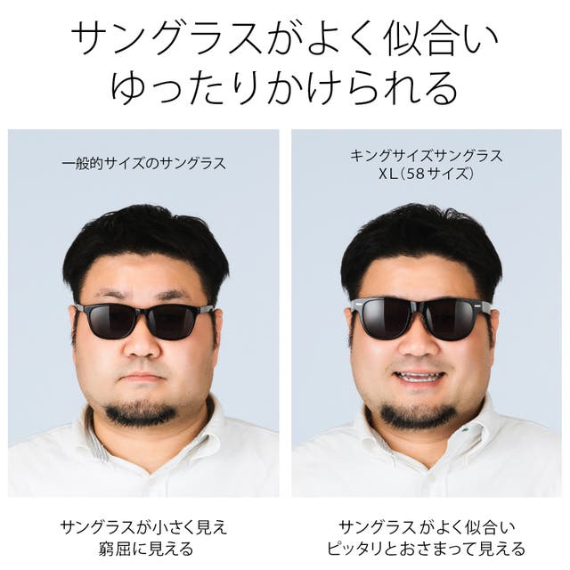 キングサイズサングラスはXL(58□)サイズと5L(62□)サイズの2サイズ展開です。