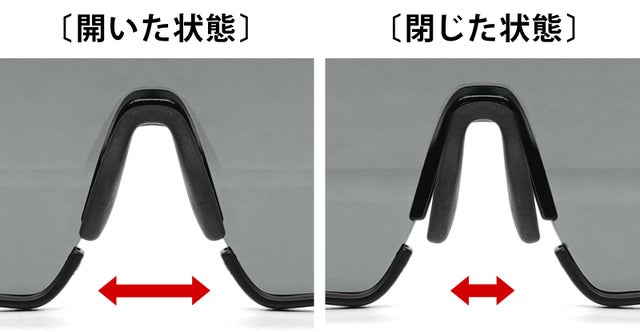 ノーズパッドは鼻の形状にあわせて簡単に調節可能。かけ心地を調節でき、フィット感を高めることが可能です。独自の機構でネジ頭が顔に触れることなくスマートなデザインです。