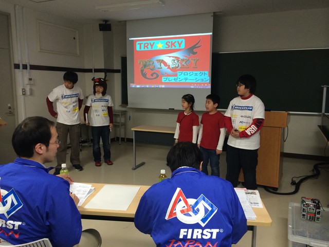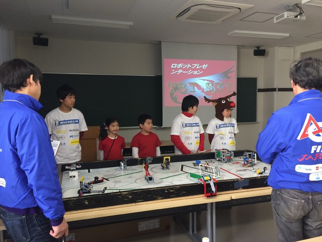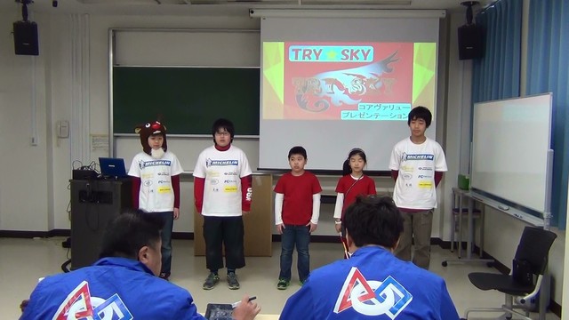 このロボット大会の特徴として、ロボット競技以外にプレゼン競技が3種類求められ、ロボット競技が400点満点なのに対し、プレゼン競技が600点満点となっていることがあげられます。プレゼンはコアバリュー(チームの強みをアピール)ロボットデザイン(自分達のロボットの長所、工夫したところ)プロジェクト(毎年異なるテーマに合わせた、自分達なりの解決方法)の3種類となっており、プロジェクトプレゼンは子どもの提案するものであっても、実社会の中で実現可能なプロジェクトであることが必須条件となっています。