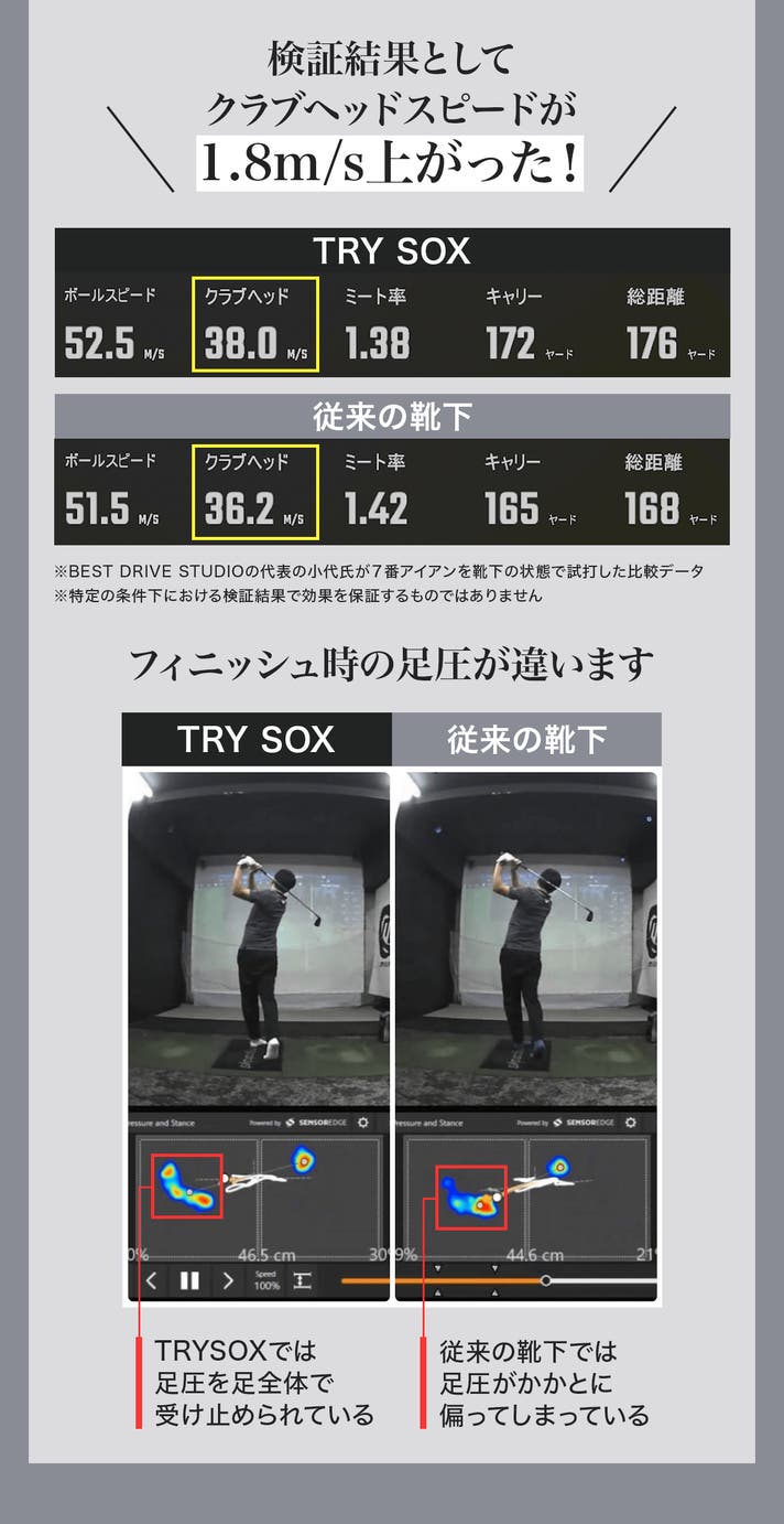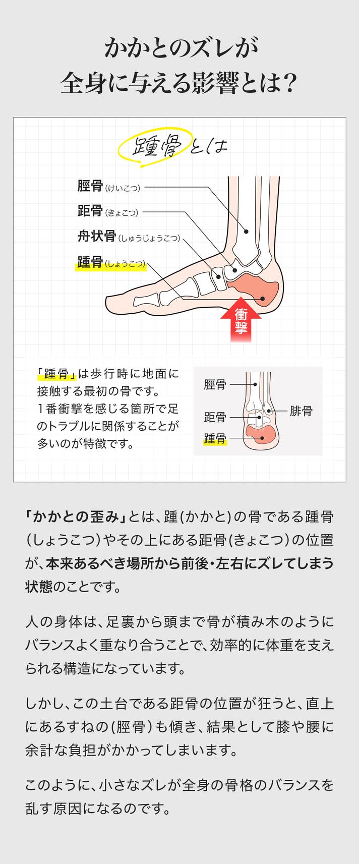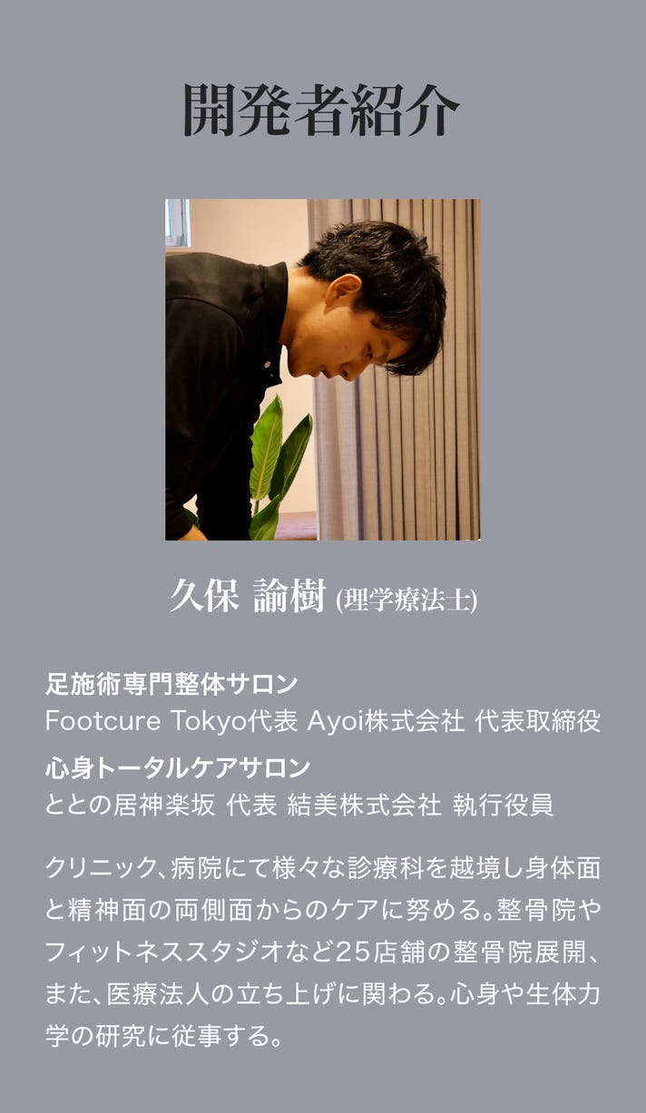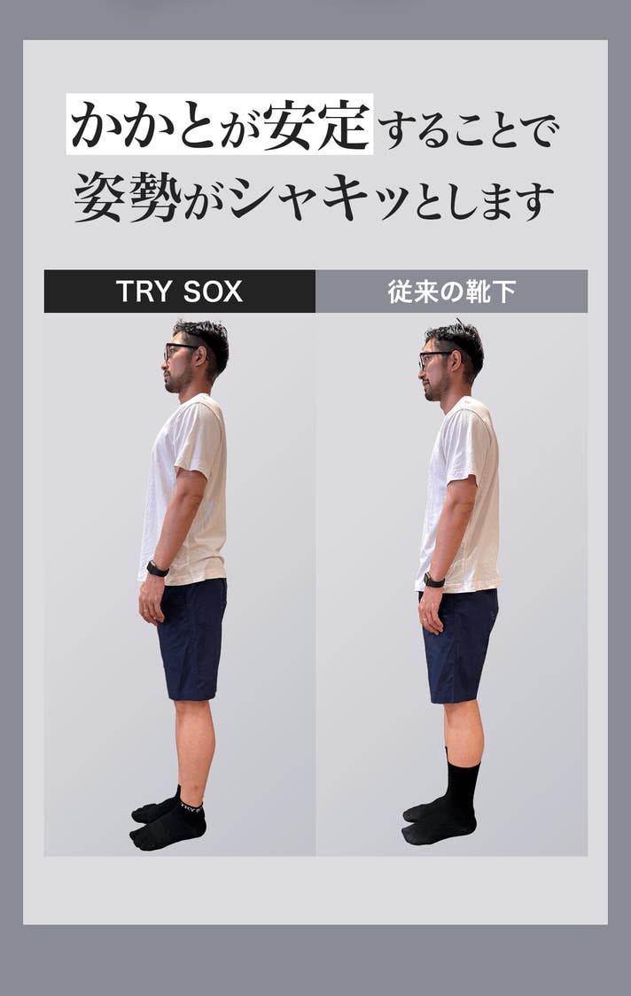 - 足の専門家と共同開発。テーピング、インソール技術を搭載した高機能靴下でかかとから体幹を支える