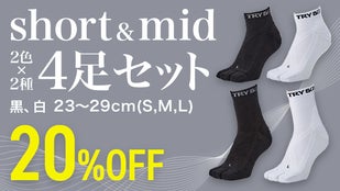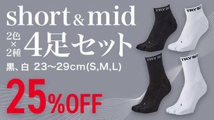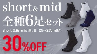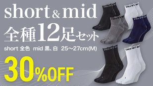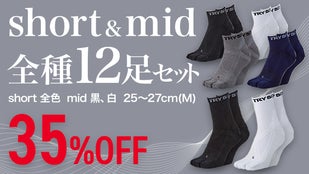 【早割】30%OFF short 4色、mid 黒白2色×2セット 計12足