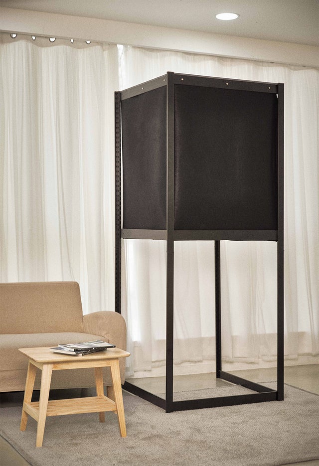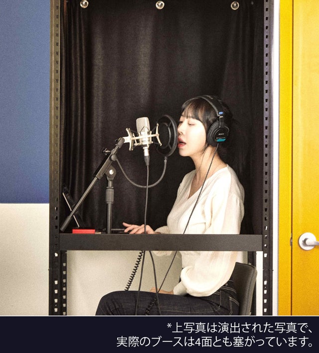 壁と天井を構成するノイズライト吸音材とアートボード吸音材は音をきれいに吸収します。 中に入って全面を閉めると周りが静かになり、完全に集中することができます。
