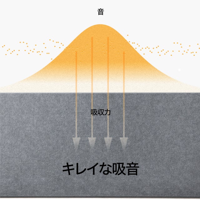 - 壁と天井を構成するノイズライト吸音材とアートボード吸音材は音をきれいに吸収!