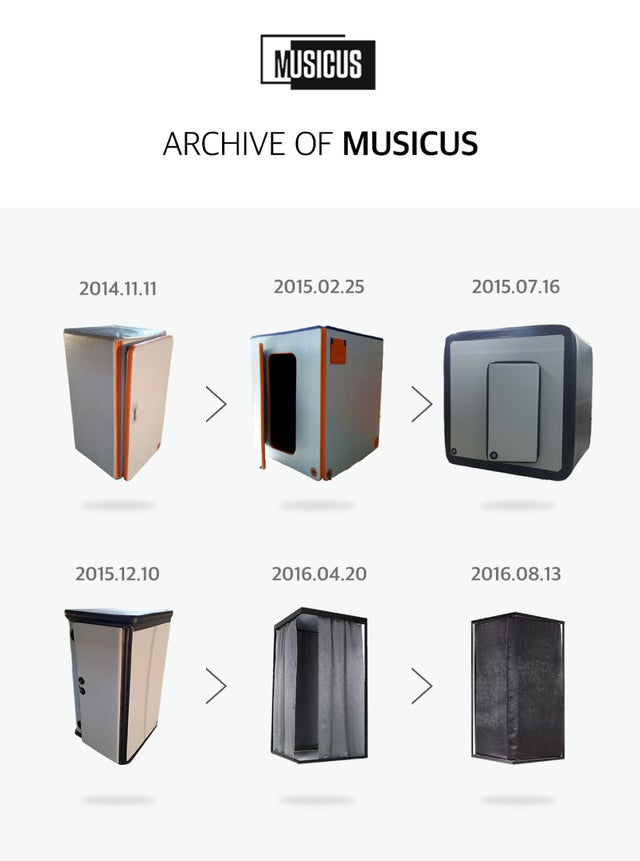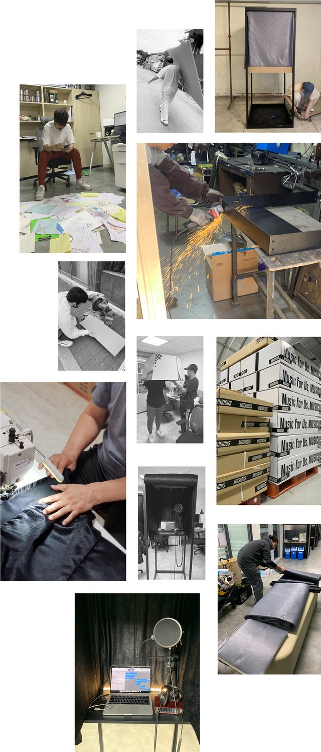 ミュージクスはもっと多くの人に使っていただける防音ブースを作るために続けて努力していきたいと思います。ファブリック素材、フレームの構造や設計、デザインまで、数百枚のスケッチと数十個の試作品製作を経て防音のための本質だけを残しました。