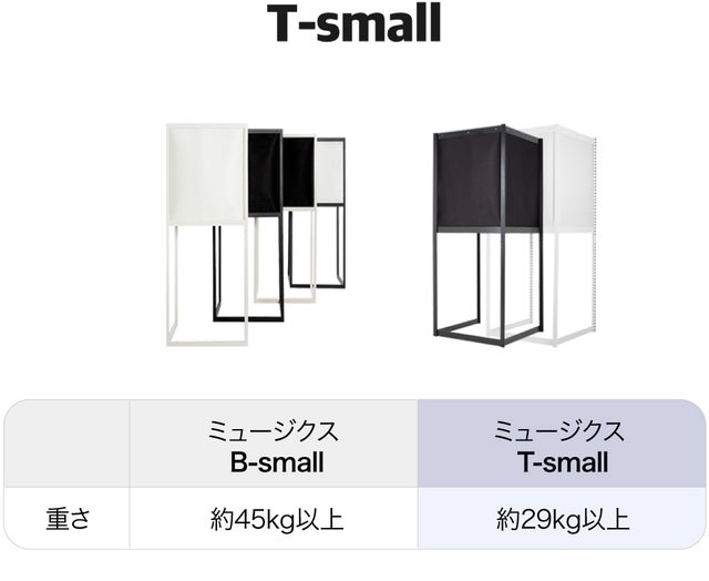 ミュージクス T-smallの空間の幅は従来のB-smallに比べ15%大きくなりました。