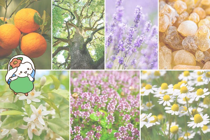 ビターオレンジ果皮油、クスノキ葉油、ラベンダー油、ニュウコウジュ油、ビターオレンジ花油、マヨラナ花油、ローマカミツレ花油