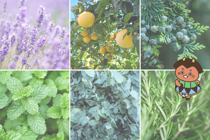 ラベンダー油、グレープフルーツ果皮油、イタリアイトスギ葉/実/茎油、ハッカ葉油、ユーカリプツスラジアタ葉/茎油、ローズマリー葉油