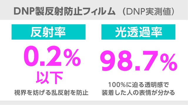 もっと良い材料がないか、これまでの「ものづくり」でつながってきた様々な材料メーカーへ問い合わせたところ、液晶テレビ用フィルムにも使用される大日本印刷株式会社(以下:DNP)製の光学用材料である「反射防止フィルム」を導入することで、乱反射や見えづらさを大幅に低減できることがわかりました。