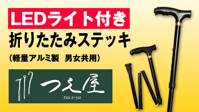 - 杖だけを取扱う杖専門店つえ屋が作った「LEDライト付き折りたたみステッキ」です