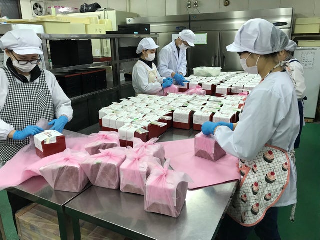 一般には流通しない升席弁当を承っていますが、これは年に一度の津川の大イベントです。パートさんを集結してみんなで楽しく作っています!