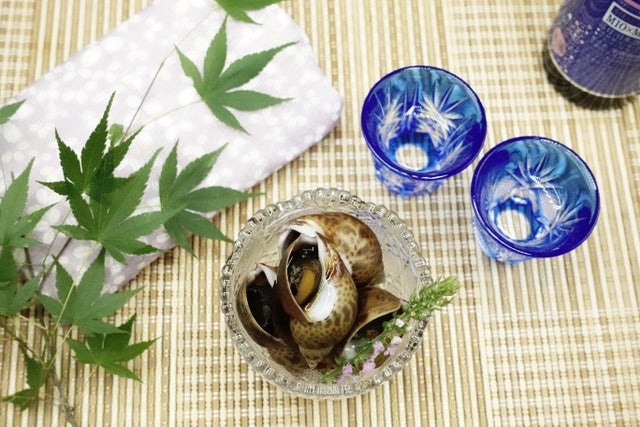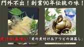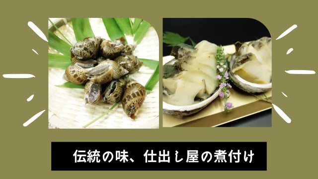 - 門外不出!老舗の味付け、活バイ貝の煮付けとアワビの酒蒸し