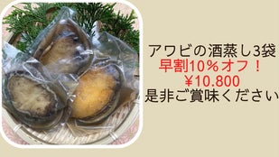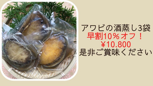 【早割10%オフ】アワビの酒蒸し×3個のセット
