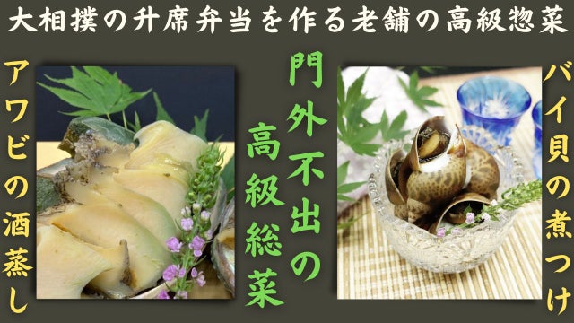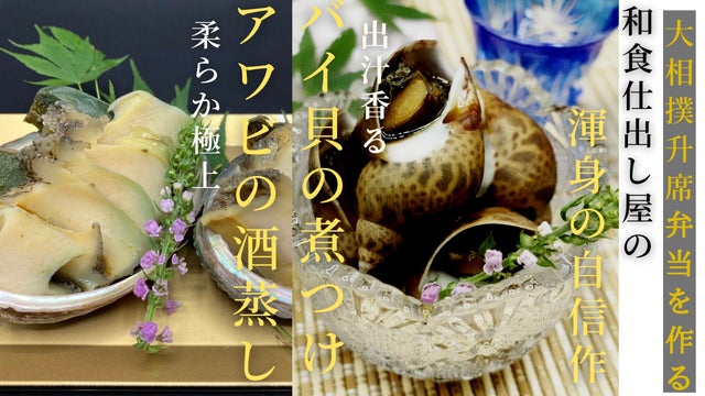 大相撲の升席弁当を作る老舗仕出し屋の「バイ貝煮付けとアワビの酒蒸し」