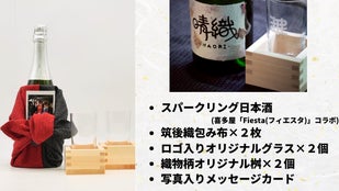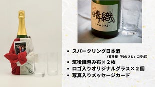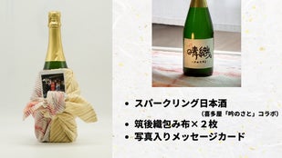 - 世界に誇る喜多屋酒造謹製のスパークリング日本酒を筑後の織物で包んだ、ハレの日の特別仕様