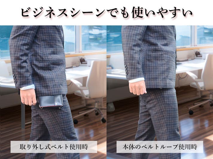 - スーツにもカジュアルにもフィットする、スマホと財布の定位置になる【魅せるポーチ】