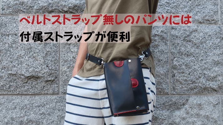 ベルトループのないパンツ、(特に夏のハーフパンツ等)では付属ストラップを重宝します