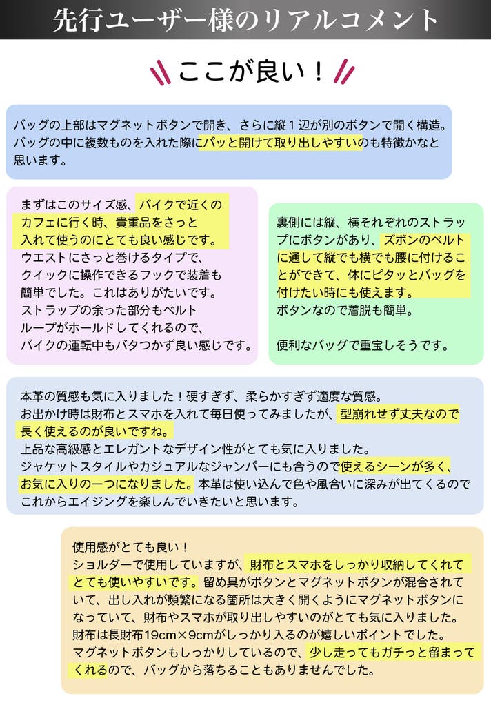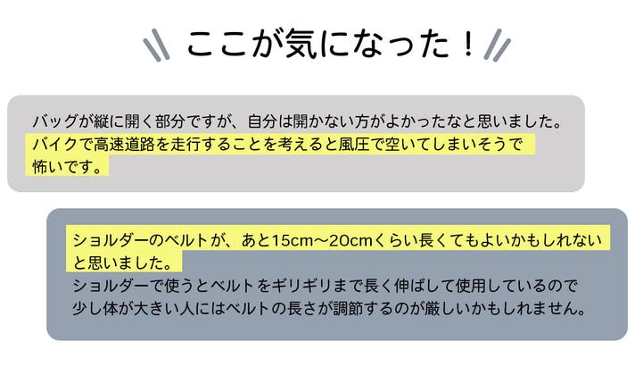 なお、2点目のショルダーベルトの長さについては、ご意見を頂いた後、
