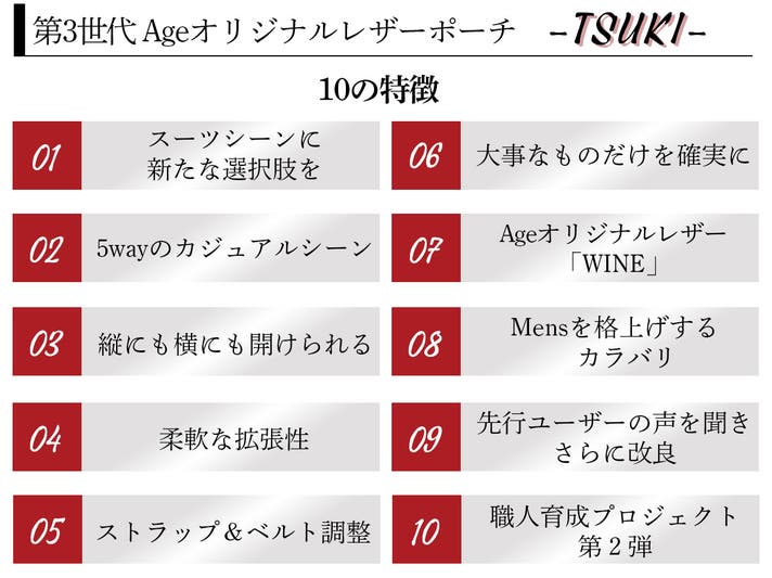第3世代Ageオリジナルレザーポーチ【TSUKI】を開発しました。