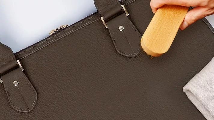 ・基本的なお手入れはブラッシングでの汚れ落としのみで問題ありません。シュリンクレザーの表面には無数の溝があり、埃や汚れが溜まりやすいので、馬毛ブラシなどで表面の汚れを払い落としましょう。