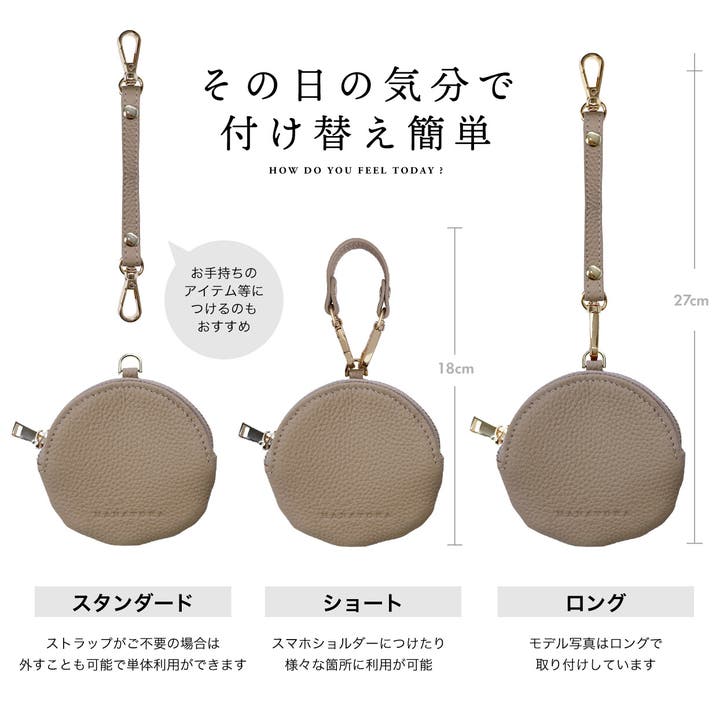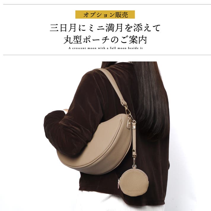 さらに便利により使いやすく。本体の三日月にまんまるお月様テイストの丸型コインケースを添えませんか。その日の気分によってストラップの取り外しができ、別のバッグにつけたり、単体でも使える便利なアイテムです。