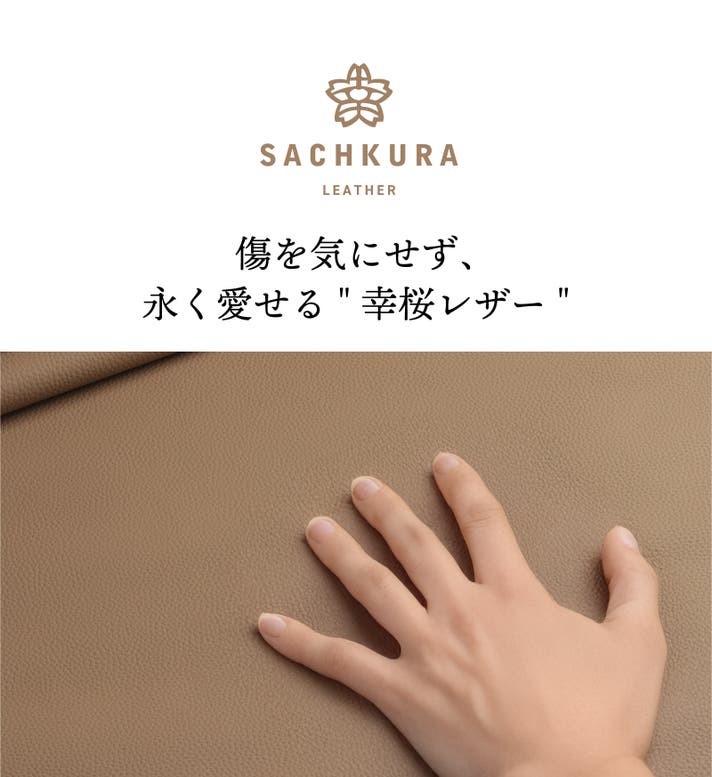艶やかなHANATORA特注高級本革 "幸桜(サチクラ)"。厳選された天然牛革を使い、細やかなシボ感を生み出しました。経年変化が弱めで美しい発色を長くお楽しみいただけます。