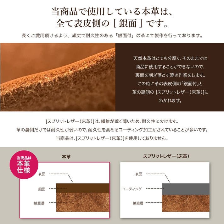 ・こちらの商品は使用するレザーとパーツを厳選しております為に革の個性(※)は少ないですが、天然皮革を使用しておりますためわずかに個性が見られるものもございます。予めご承知おきくださいませ。