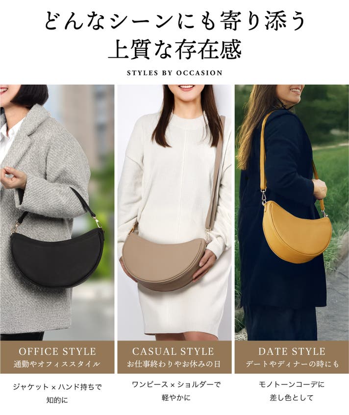 - ひと目で惹かれ、永く愛せるフォルム。大人の女性のための“クレセントムーンバッグ”。