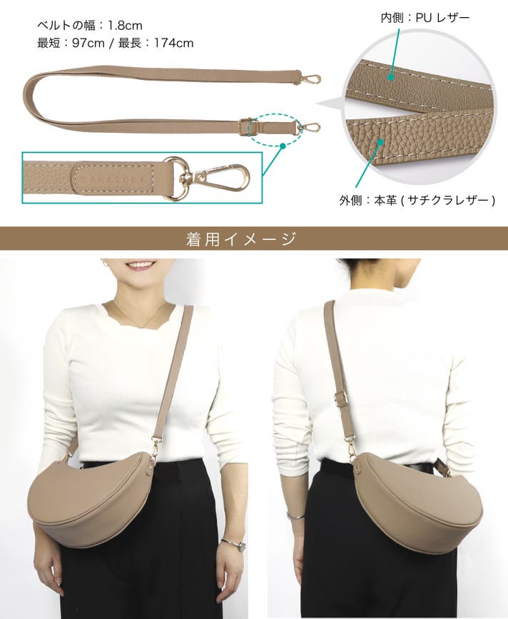 【極早割フルセット】 高級本革 ムーンバッグ ストラップ&丸形ミニポーチセット