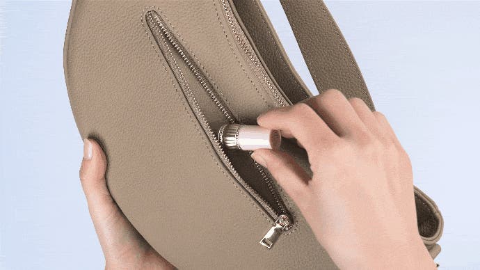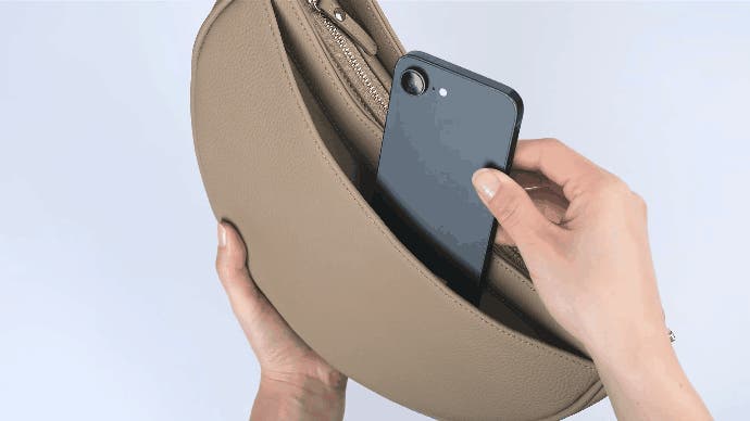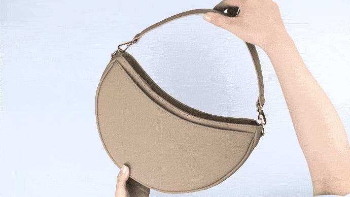 “ムーンバッグ”と呼ばれる製品は数多くありますが、月の美しさを再現できているアイテムは多くありません。私たちは半円からカーブを削り取り、ハンドストラップを立てた瞬間に“満ちる月”の形が完成するよう設計しました。底面には芯材を仕込み、カーブを保ったまま自立。バッグそのものがオブジェのように佇みます。