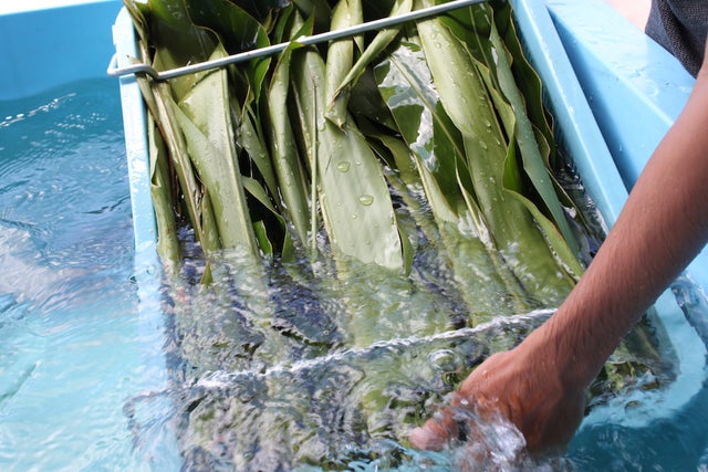 月桃を蒸して、そのエキスを抽出する方法で作成する「月桃蒸留水」を