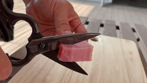 切りにくい生のお肉もきれいに切れますよ!食材を深追いしすぎてまな板を傷つけることもありません。