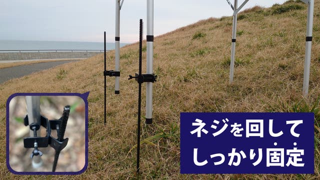 ・地面がガタガタでもペグの様に差して固定出来ます!