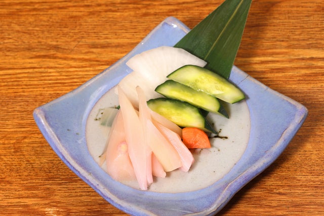 愛情込めて育てた”ぬか床”で作るおいしいお漬け物。体に優しい乳酸菌たっぷりのぬかを毎日かきまぜて作ります。季節のお野菜を漬けていますのでその日の1番美味しい食材が食べられます。